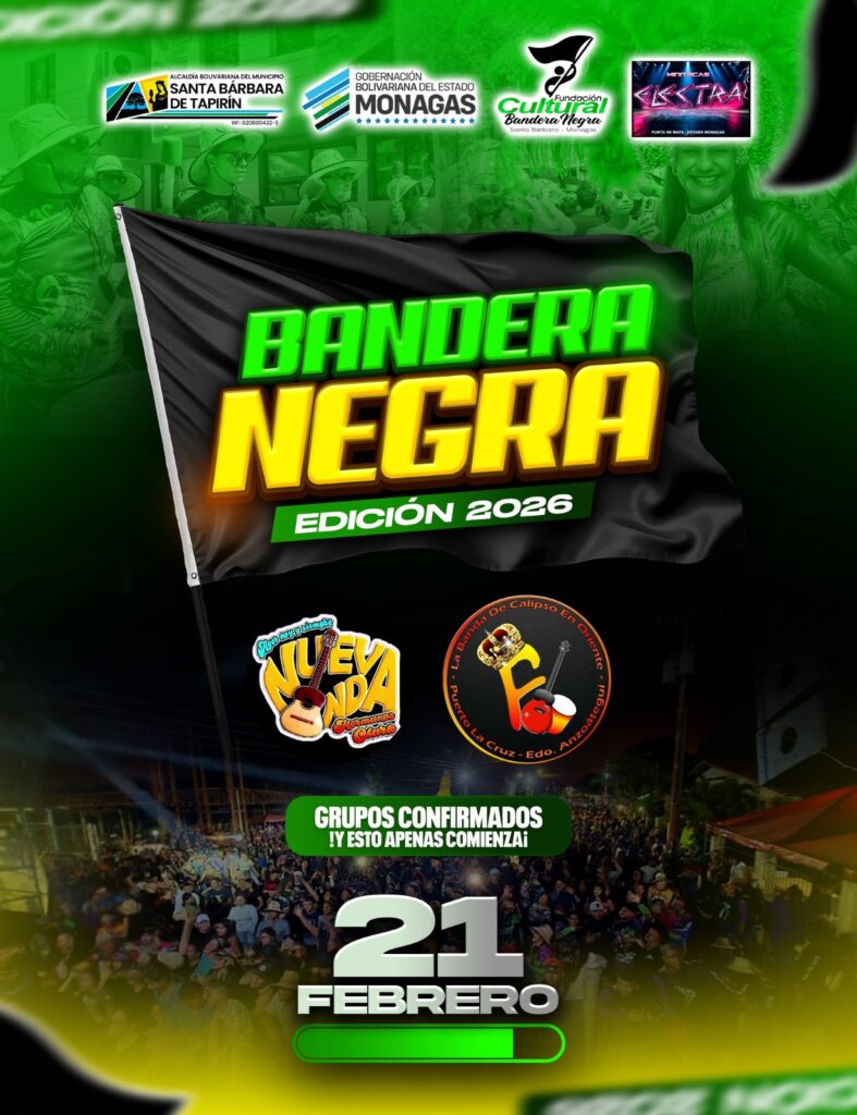 SANTA BÁRBARA, MONAGAS – La espera ha terminado. La Fundación Cultural Bandera Negra, de la mano de su junta directiva y su presidente, José Sánchez, ha oficializado lo que todo el pueblo esperaba: la celebración de la «Bandera Negra» es un hecho. El próximo 21 de febrero, las calles de Santa Bárbara se llenarán de color, ritmo y una tradición que late con más fuerza que nunca.