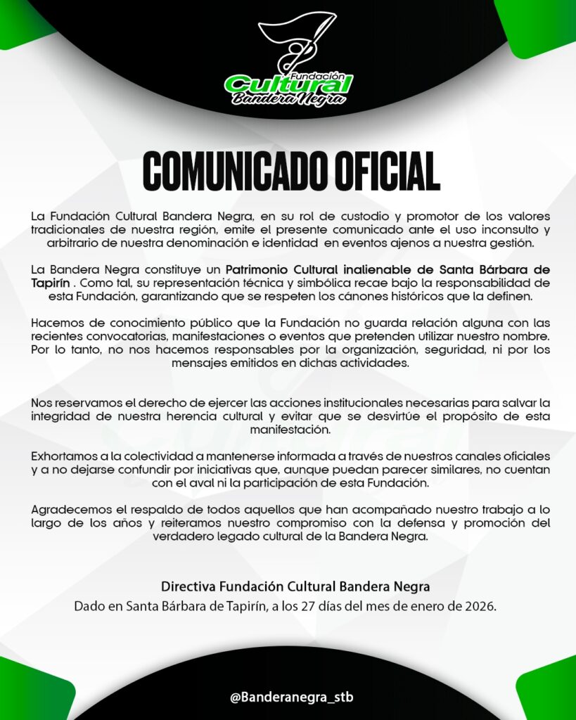 Con más de ocho décadas de historia, la Bandera Negra no es solo una fiesta local; es un patrimonio que ya hace eco en toda Monagas y Venezuela. En el marco de esta celebración, la fundación anunció que próximamente se realizará la rifa de una motocicleta y se lanzará su nuevo sitio web oficial, donde los asistentes podrán adquirir su boletería de forma segura y rápida.
